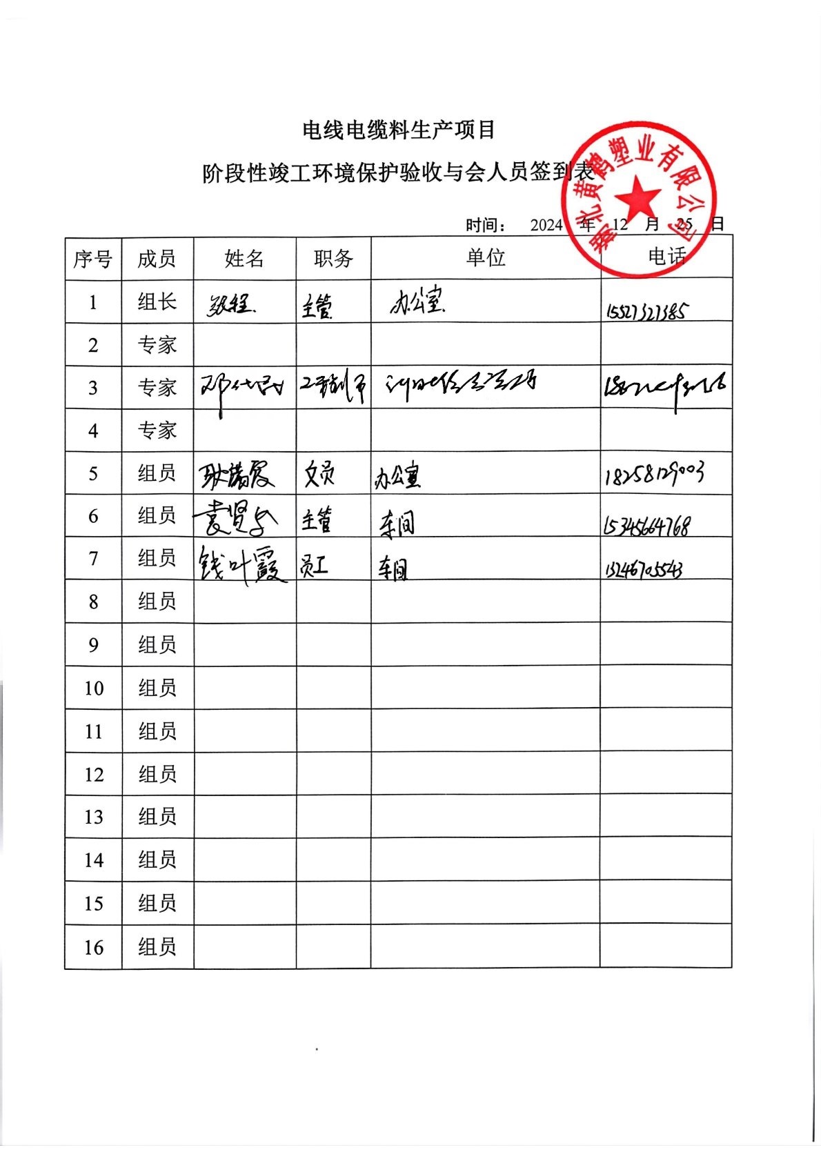 2024年12月25日,湖北黃鶴塑業(yè)有限公司在黃岡市黃梅縣主持召開了《電線電纜料生產(chǎn)項目階段性竣工環(huán)境保護(hù)驗收監(jiān)測報告表》技術(shù)評估會。
